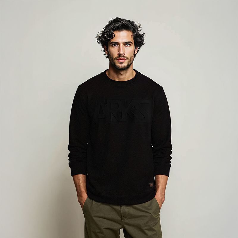 This sweatshirt, made from premium French Terry fabric, combines modern aesthetics with everyday comfort. The embossed chest design adds a confident touch, while the ribbed cuffs, collar, and hem ensure a snug and polished fit. Built from 260 GSM no-pilling material, it’s designed for durability and long-lasting wear. Available in Black, White, and Dawn Blue, it pairs effortlessly with joggers or jeans for elevated casual looks.
