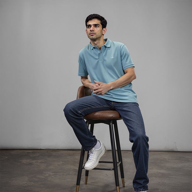 Men's Cotton Double Pique Polo T-Shirt - Teal