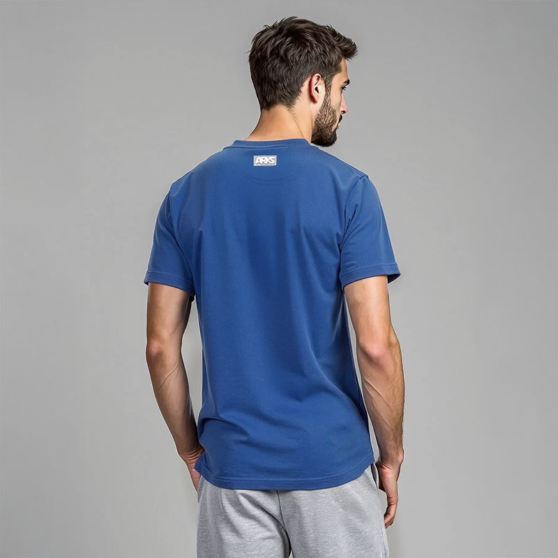 Men's French Terry Printed Round Neck T-Shirt - Dark Blue