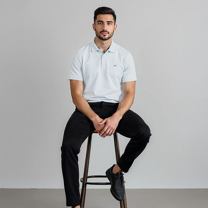A soft double pique fabric, offers this polo T-shirt a polished look with a luxurious hand feel. A 2-button placket, ribbed collar, and contrast side slit tape add subtle details, while the regular fit ensures ease for casual or semi-formal settings. Available in Black, Dawn Blue, White, Teal, Navy Blue and Olive, it pairs effortlessly with chinos or jeans for a refined yet relaxed style.