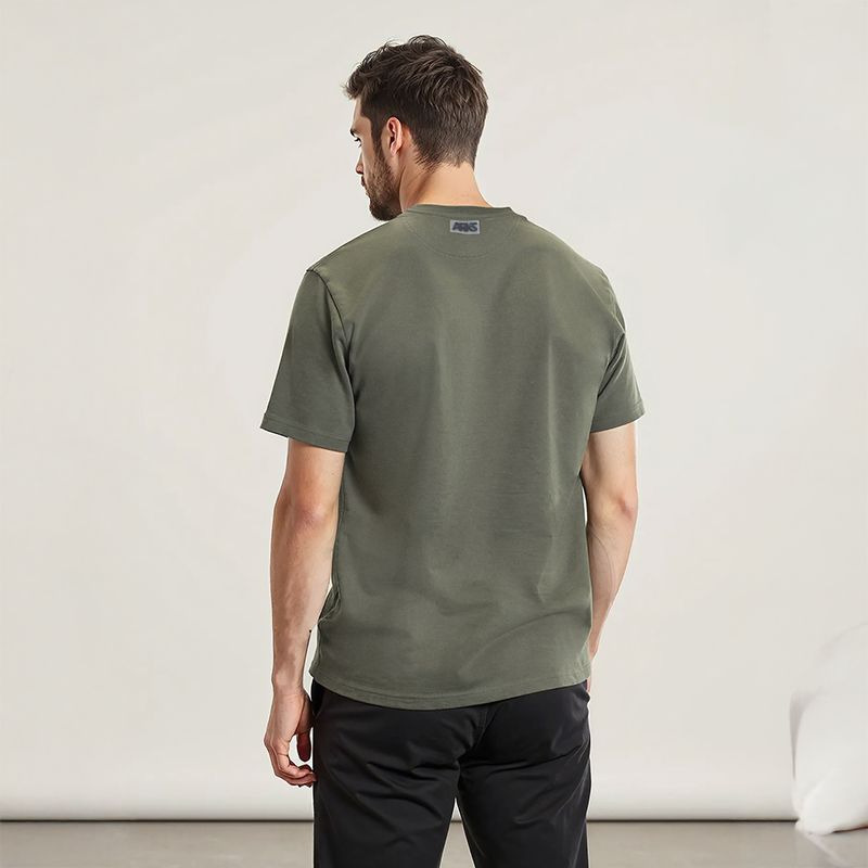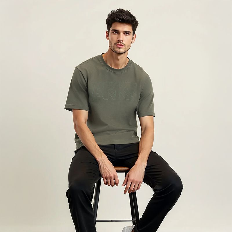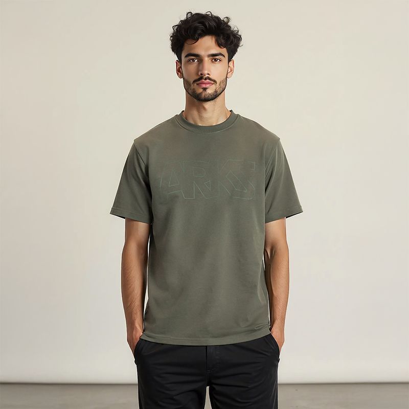 Men's French Terry Printed Round Neck T-Shirt - Olive