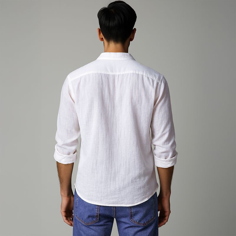 Men's Linen Classic Collar Shirt - White