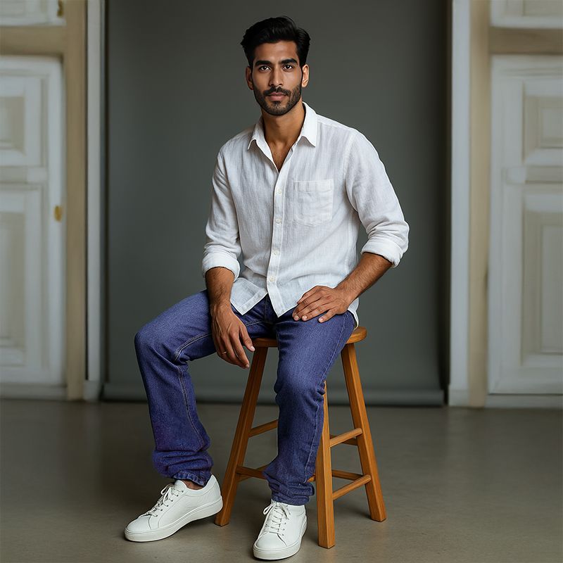 This classic collar shirt, made from 40 Lea fine textured linen, offers a refined balance of sophistication and versatility. The straight fit ensures all-day comfort, complemented by mother-of-pearl buttons, a chest pocket, and square cuffs for elevated detailing. Available in classic Dawn Blue, White, Olive and Navy Blue shades, it’s a go-to choice for both tailored and laid-back ensembles.