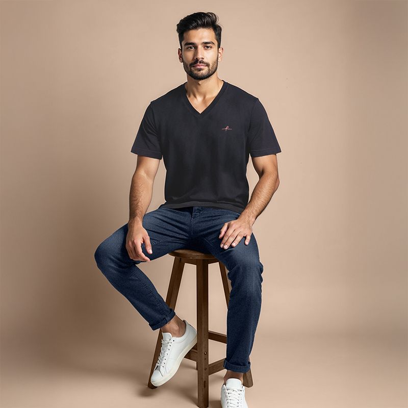 Men's Cotton Jersey V-Neck Tshirt - Black