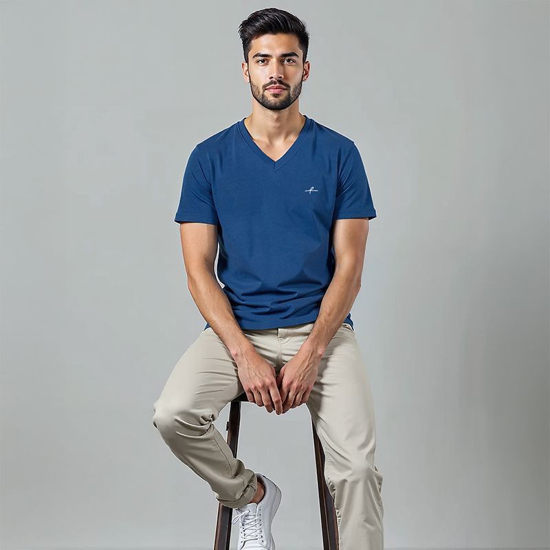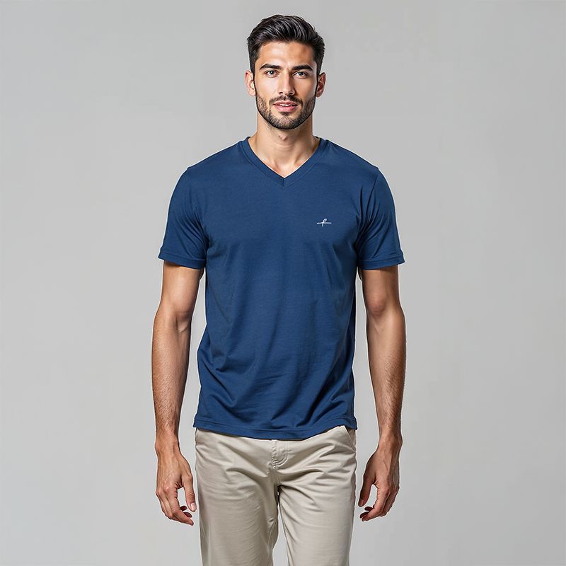 Men's Cotton Jersey V-Neck Tshirt - Navy Blue