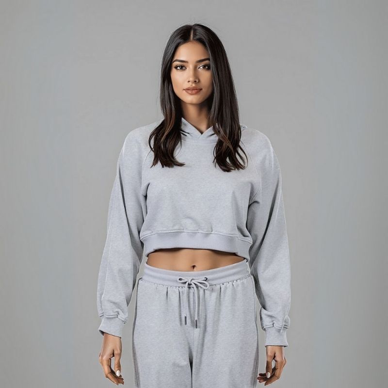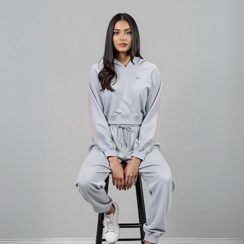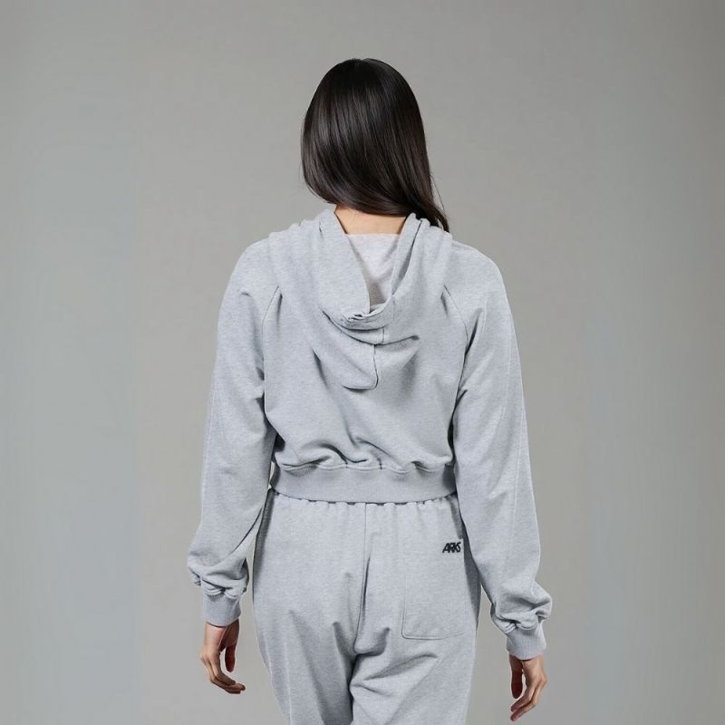 Women's French Terry Zipped Sleeve Hoodie - Grey Melange